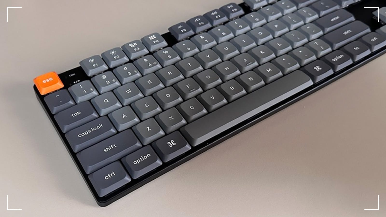 The K5 Max features Keychron’s most notable colorway, with a slim black body and gray low-profile keycaps. There’s no branding on the top part of the keyboard, but anyone familiar with the brand will be able to identify it.