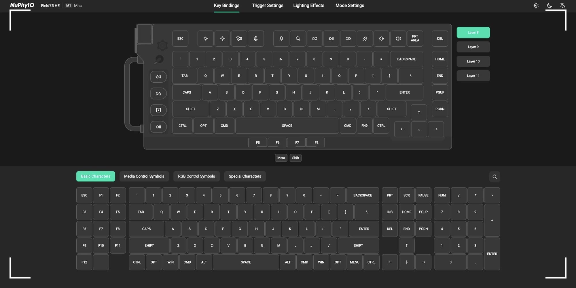 Older NuPhy keyboards use the company's dedicated software, while releases like the Air75 V2 use VIA for web-based software control and the non-HE Field75 uses the brand's Field Console software. I'd like to see them consolidate their software with future releases and make their entire lineup use Nuphy.io.